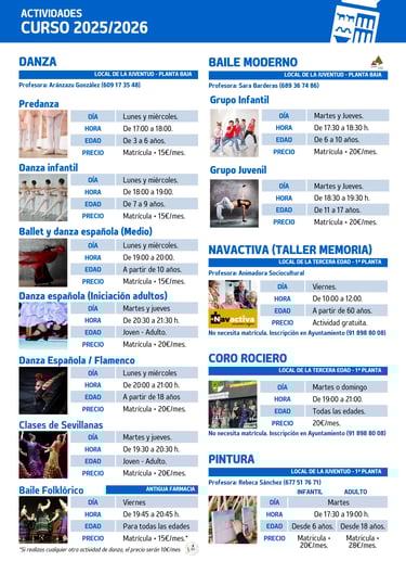 Actividades culturales y deportivas 2025/2026