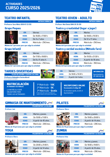 ¡Abierto el plazo de matriculación para las actividades culturales y deportivas para el curso 2025/2026!