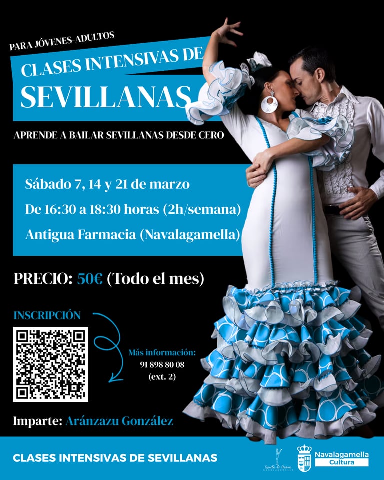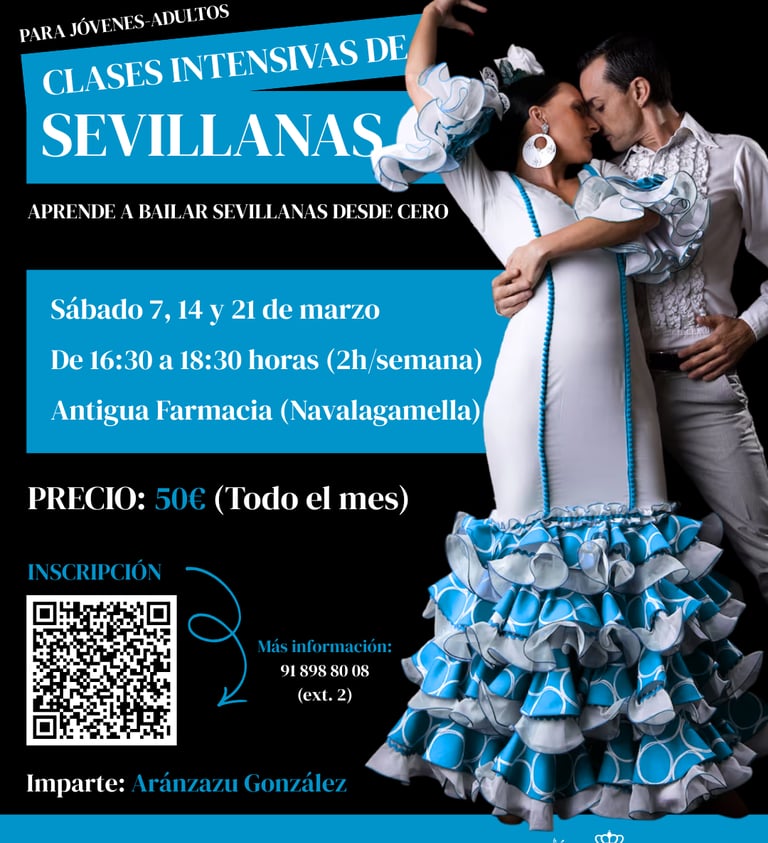 La Concejalía de Cultura de Navalagamella ha anunciado la apertura de inscripciones para las nuevas clases intensivas de Sevillanas, diseñadas específicamente para jóvenes y adultos que deseen iniciarse en este baile tradicional desde cero.