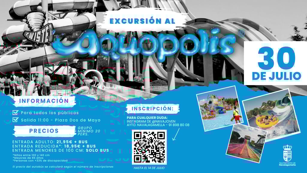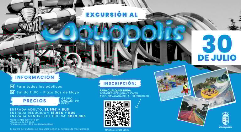 El próximo miércoles 30 de julio, se va a realizar una excursión al Aquopolis de Villanueva de la Cañada. Esta actividad está diseñada para todos los públicos y promete un día lleno de diversión para grandes y pequeños.