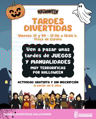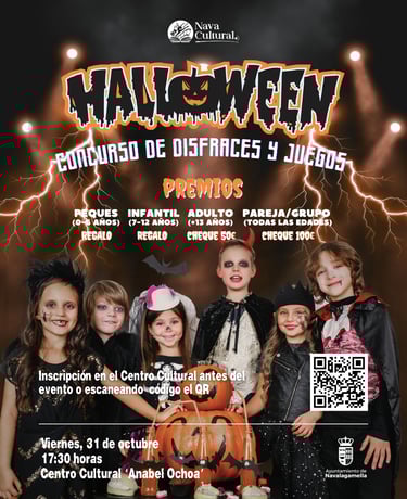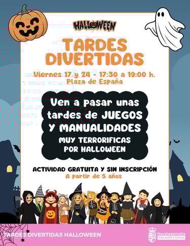 Prepara tu calendario y tu mejor disfraz. El Ayuntamiento de Navalagamella ha preparado una programación especial para celebrar Halloween 2025. Una semana repleta de actividades espeluznantes para todas las edades que culminará con el gran Concurso de Disfraces y una Noche de Cine de Terror.