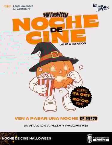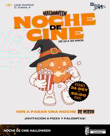 Cerramos la noche de Halloween con una cita ineludible para los amantes del suspense y el terror. Prepara tus nervios, porque la sesión de cine promete ser escalofriante. Además, para los jóvenes del municipio (de 12 a 30 años), habrá pizza y palomitas para que la velada sea perfecta. ¡Una forma ideal de terminar el día más aterrador del año!