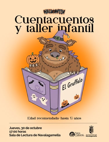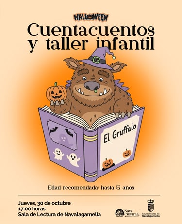 Pensando en los más pequeños de Navalagamella, hemos organizado una tarde mágica. Comenzaremos con un Cuentacuentos sobre "El Gruffalo".