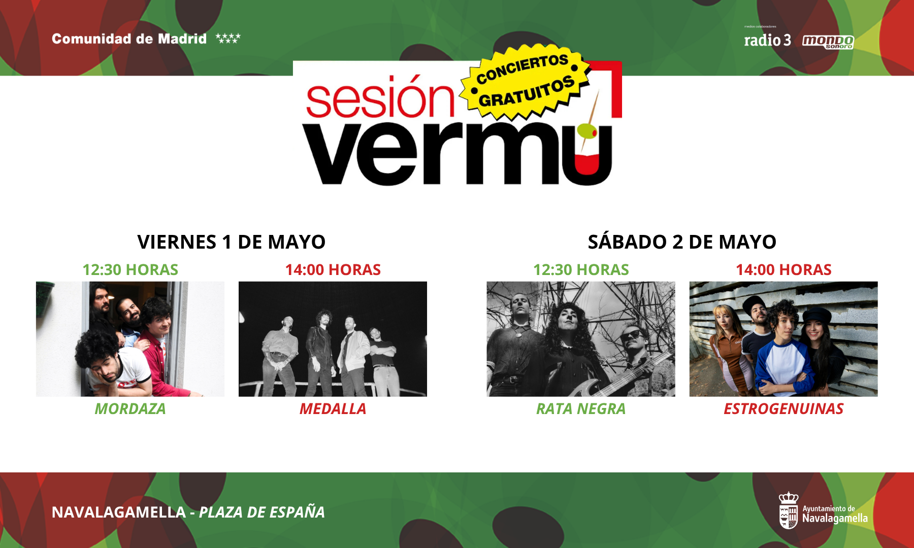 Por segundo año consecutivo, Navalagamella se suma al ciclo de conciertos gratuitos 'Sesión Vermú'.