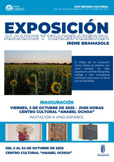 El viernes 3 de octubre la cultura tomará protagonismo desde la tarde con una divertida gymkana cultural y familiar. Ese mismo día, a las 20:00 horas, el humor llegará de la mano de Dani Fontecha, conocido por su participación en el programa El Hormiguero, que hará reír al público con su estilo fresco y cercano. La noche se completará con la inauguración de la exposición “Alcance y Transparencia” de Irene Bramasole, a las 21:00 h., una artista madrileña que combina fotografía, collage y arte conceptual para ofrecer una mirada cargada de sensibilidad. Tras la apertura, que incluirá un vino español para los asistentes, la muestra podrá visitarse hasta el 24 de octubre.